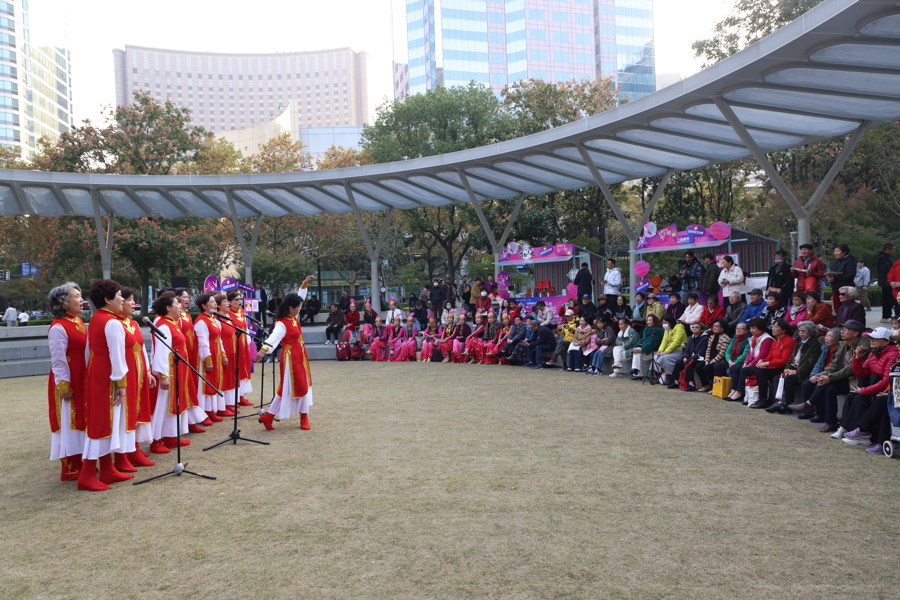 除了精彩的演出,现场还设有多个服务摊位。上海市健康养老发展(集团)有限公司带来普惠养老知识,尚体健康科技(上海)有限公司展示了数字化健康服务,吸引不少市民驻足咨询与体验。