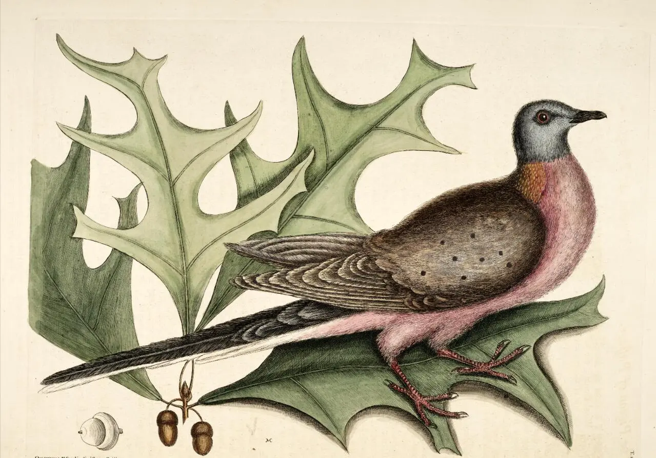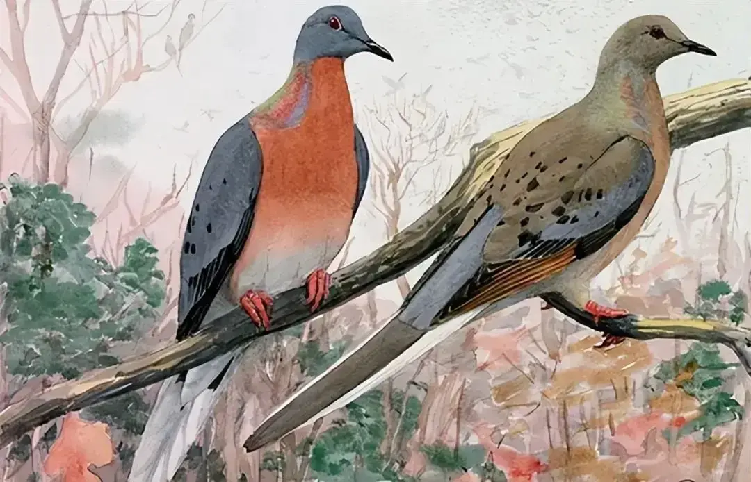 鸟群扇动的气流吹弯树枝,粪便如冰雹般砸落地面。面对这生命洪流,奥杜邦在日记中笃定写道:“旅鸽是永远不会被人类消灭的。”彼时北美旅鸽数量相当于当今全球人口三分之二,飞过农田时能压断成年橡树的枝干。