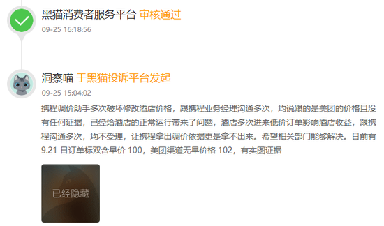 “携程调价助手多次破坏修改酒店价格,跟携程业务经理沟通多次,均说跟的是美团的价格且没有任何证据,已经给酒店的正常运行带来了问题”。
