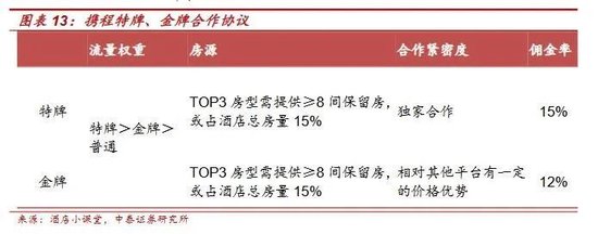 据中泰证券研报显示,携程住宿预订的综合佣金率大概在8%-10%,但这只是“基础版”。如果不“买量”获得平台的流量支持,中小商户很难拿到订单。据测算,如果选择平台倾斜流量的特牌、金牌,佣金率直接飙升到12%-15%。