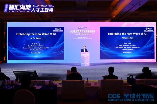 Themed “Decoding the Future with Young Minds,” the Global Young Leaders Dialogue Annual Forum 2025 was successfully held in Beijing from November 18 to 20. The event was hosted by the Center for China and Globalization (CCG), co-organized by the Secretariat of the Global Young Leaders Dialogue (GYLD) program, and supported by the Haidian District Human Resources Bureau and the Haidian District Foreign Affairs Office. At the Opening Ceremony on November 19, Dr. Ya-Qin Zhang, Chair Professor of AI Science and Dean of the Institute for AI Industry Research (AIR) at Tsinghua University, delivered a keynote speech titled “Embracing the New Wave of AI: AI for Better.”